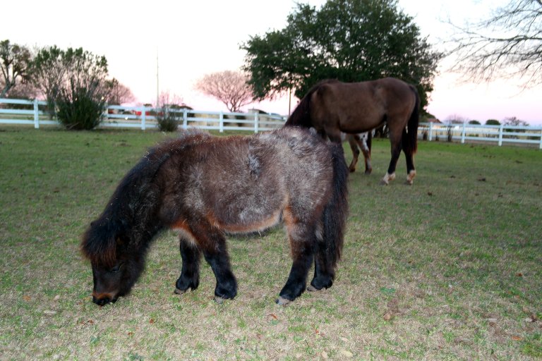 I’m going to paint a picture. It’s a balmy 65 degrees and overcast at 7:15 am this morning on the Gardner HLH Farm. A black and white blur bursts from our house sprinting towards the barn. Emerging from the barn as quickly as it got there, the blur is loaded with a bucket, neon pink halter, and purple lead rope as it dashes across the yard, into the pasture, through the hole in the fence to be greeted by a line of traffic from the neighborhood behind us. The blur’s first thought is “I should have put on pants, and also shoes.” That thought is followed by “Please people don’t try to touch the pony.”