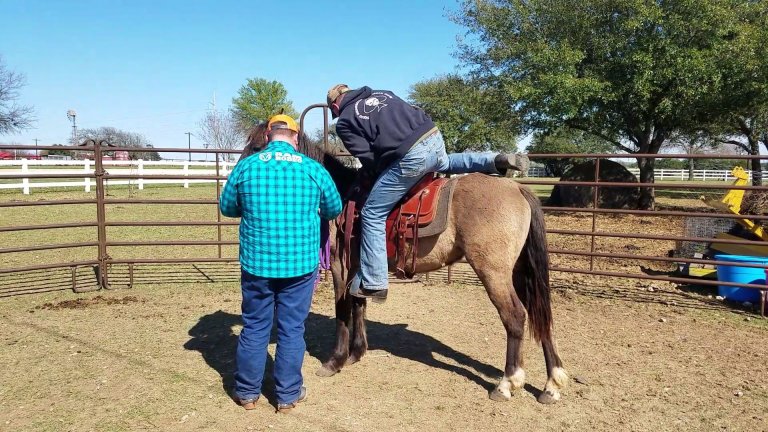 Finally it was time for the big moment. Great Friends brought, Mirage, another experienced colt breaking horse into the round pen with Koda. We repeated all of the previous steps, but this time Mirage’s rider would hold Koda’s lead instead of a person on the ground. Darling Husband stepped into the stirrup a few times, placed his knee on her rump while leaning over her, and finally eased his rear into the saddle sitting straight up. Then as Mirage stepped forward, Koda began to follow her around a small circle before Darling Husband quietly dismounted. The entire process from the first time someone stepped into the stirrup until Darling Husband dismounted from the final ride was less than thirty minutes. Darling Husband only spent about two minutes total in the saddle. At no time did Koda freak out, and we lavished tons of scratches, pats, and treats (Mostly from me, not everyone believes in treats, another blog for another day) on her when we were done.