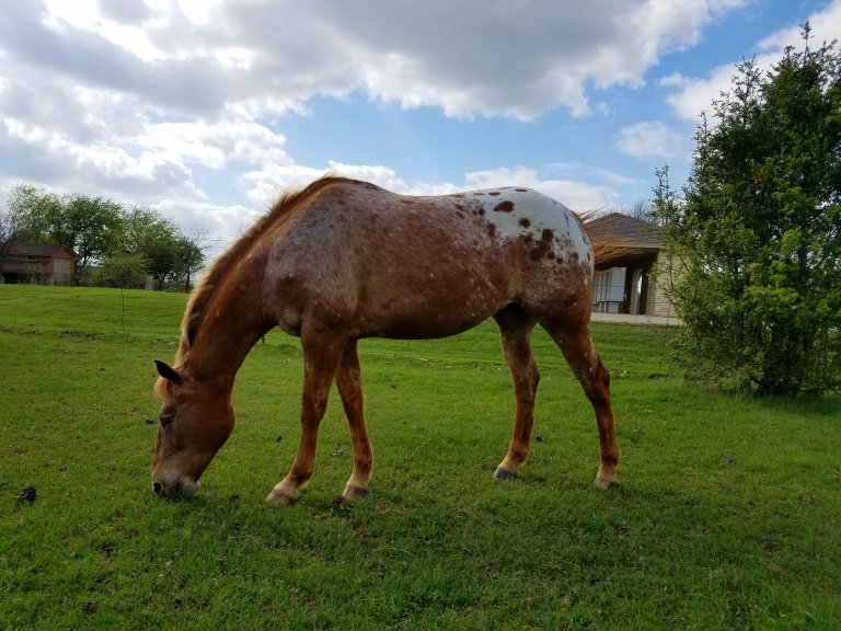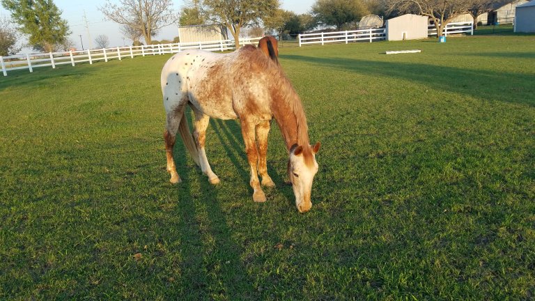 I led both horses into the arena area. The plan was to tie Odessa to the outside (because she’s my solid citizen, palm to head), work Comanche because he’s never been here before (he needs this more), and then work my darling girl (sarcasm). I draped Odessa’s bridle over the saddle horn, and tied her lead to the Priefert railing. I hopped up on Comanche, who miraculously stood, not a single step while I mounted (who is this horse?). It wasn’t until Comanche and I entered the arena that mare brain or simply boredom kicked in with Odessa. That’s when she began striking the metal Priefert panels creating a loud banging that reverberated off the surrounding metal structures. Now there were maybe ten horses total in the arena, but a few were pretty green, and Odessa’s commotion instigated a rearing, bucking event from a beautiful seventeen hand palomino quarter horse whose trainer I kind of admire. I’m sure he was thinking, “Oh, great the amateur with the crazy appaloosa is back, with not one, but two this time!”