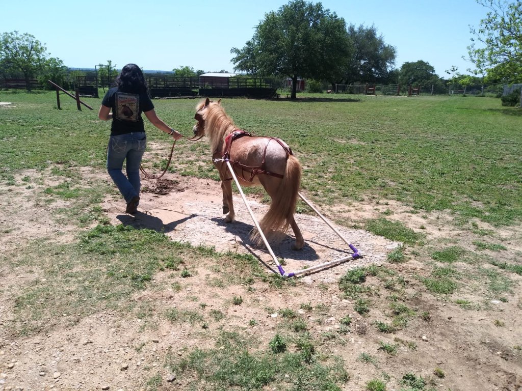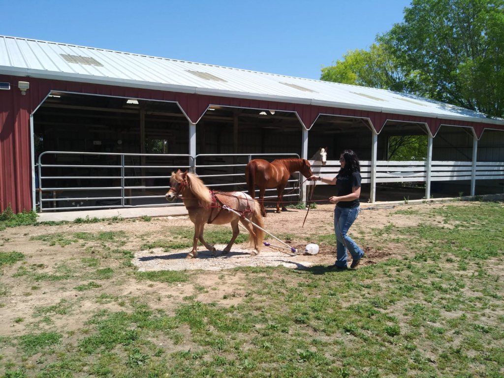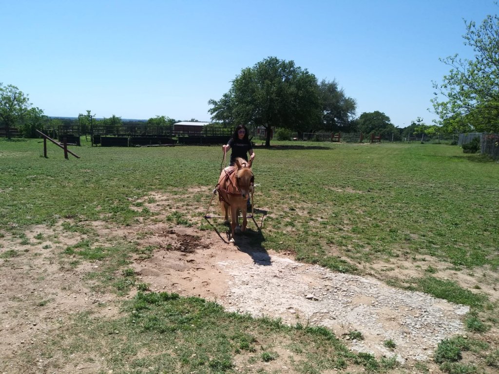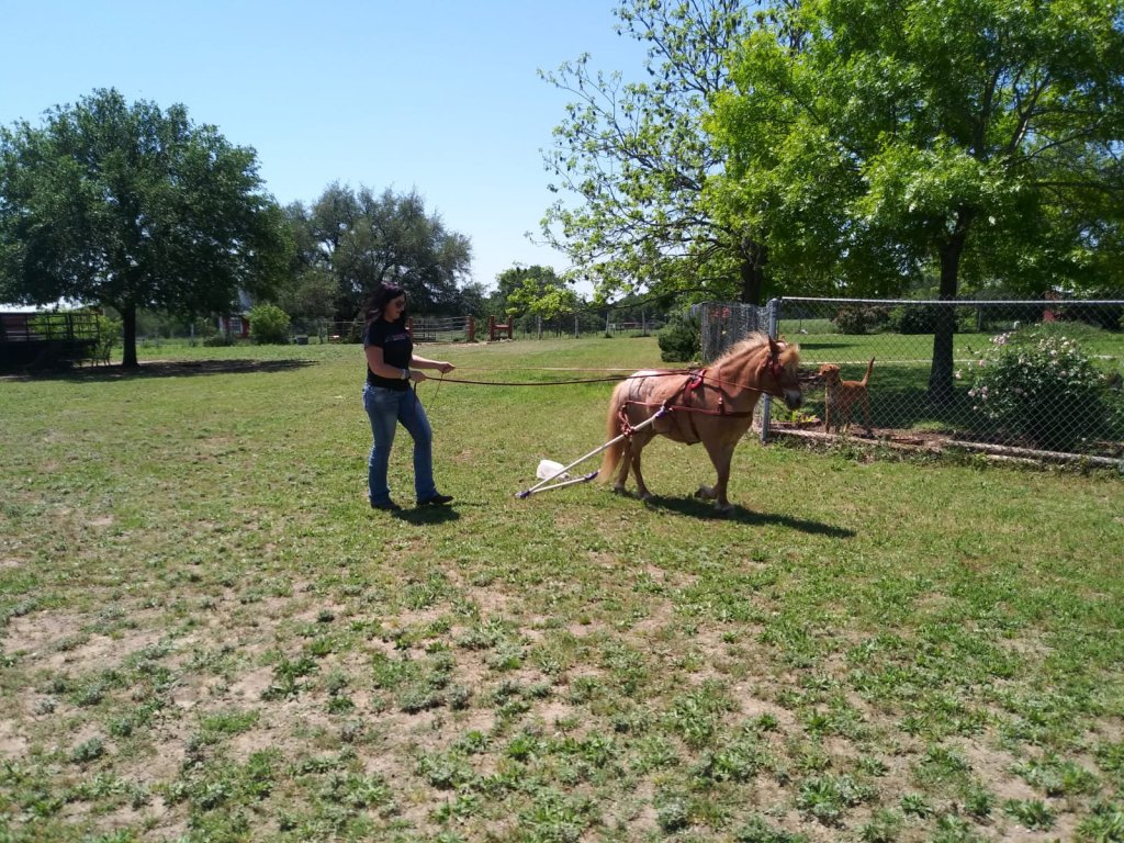 Today was a successful training day, and I can tell that IHeartArabians is pleasantly surprised at how quickly the pony has progressed. I can see that she has more confidence when working with him as well! Both ponies in training have had the exact same number of working days. Moonshine is a little farther along, since she has been pulling weighted loads, but Apple Jack is more laid back. He will not need quite as much work with the weighted loads as Moonshine is requiring. My goal is to have both ponies hooked to the cart with a passenger by the end of May. The Texas heat will make day time training virtually impossible come June, and having them both comfortable with a passenger before then will make everyone’s life easier!