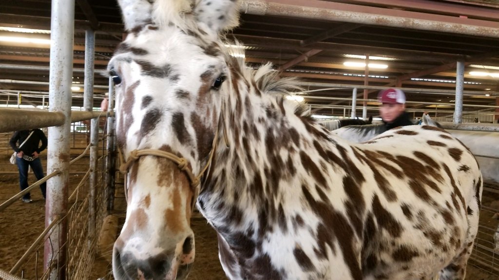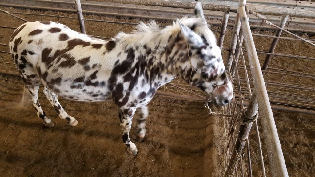 Offspring chased our chickens around the yard with a squirt bottle filled with water for a bit. He and I watched at least two Disney Cars movies while playing with cars on the floor, eating dinner (Offspring is the captain of this ship. I may rank as first mate, probably closer cabin boy though), and then he demanded milk and bed. Yes, sir! I began the nightly ritual of working ponies and horses. Odessa and I worked on her canter/flying lead changes bareback, then I fed, and put the farm critters to bed. When I checked the phone I had been ignoring, I realized I may be in trouble. Darling Husband had sent me pictures of a leopard spotted mule. First off, it was gorgeous! Secondly, we really didn’t need another equine, and I have zero experience with mules. I’m currently struggling with the differences between donkeys (Thistle) and horses. I felt safe in the knowledge that this particular mule, would probably sell for more than Darling Husband was willing to pay, but you never know.