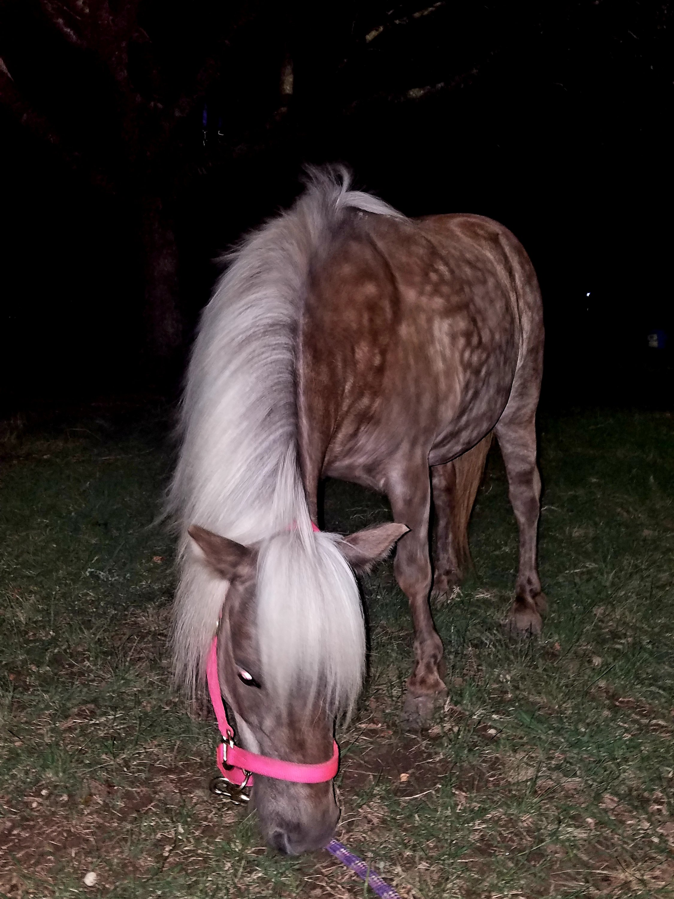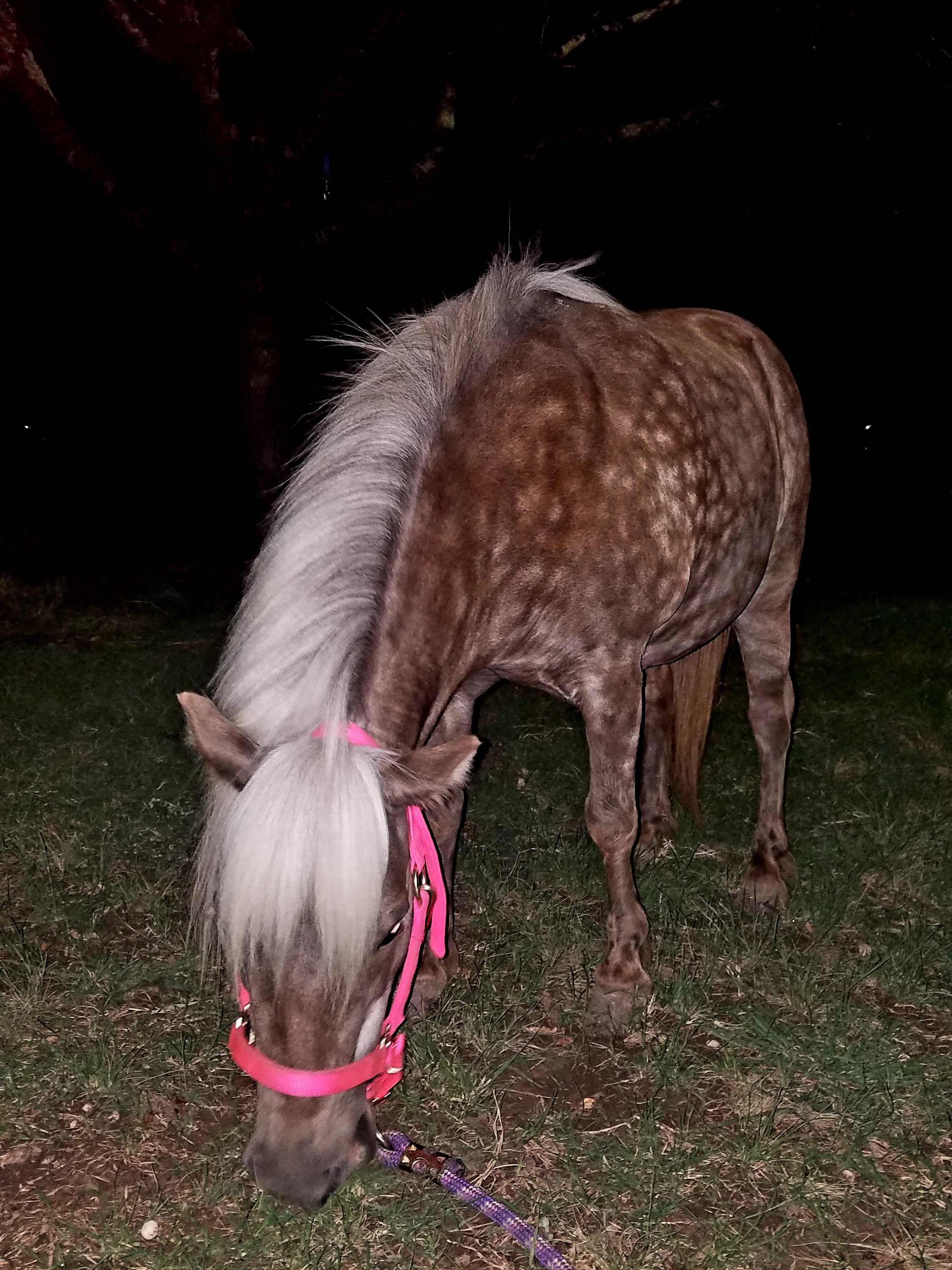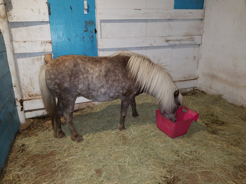 Around 2:00 am in the morning, I get a phone call…”Come outside so you can watch me unload!” What!? The leopard spotted mule flashed in my brain, and I squashed the immediate panic I feel when we add another large animal I will be responsible for on the farm. The thought of more vet bills, dentals, and farrier work, not to mention working with a strange animal you know nothing about always gives me a moment of anxiety before the horse addict in me takes over. As predicted however, the mule did sell for more than Darling Husband wanted to pay, and instead I was looking at a harmless 36 inch pony. Harmless, I say like I don’t have multiple experiences and the blog posts to prove they are anything but. These little tornadoes in fur wreak more havoc on a weekly basis than the large horses do in a year!