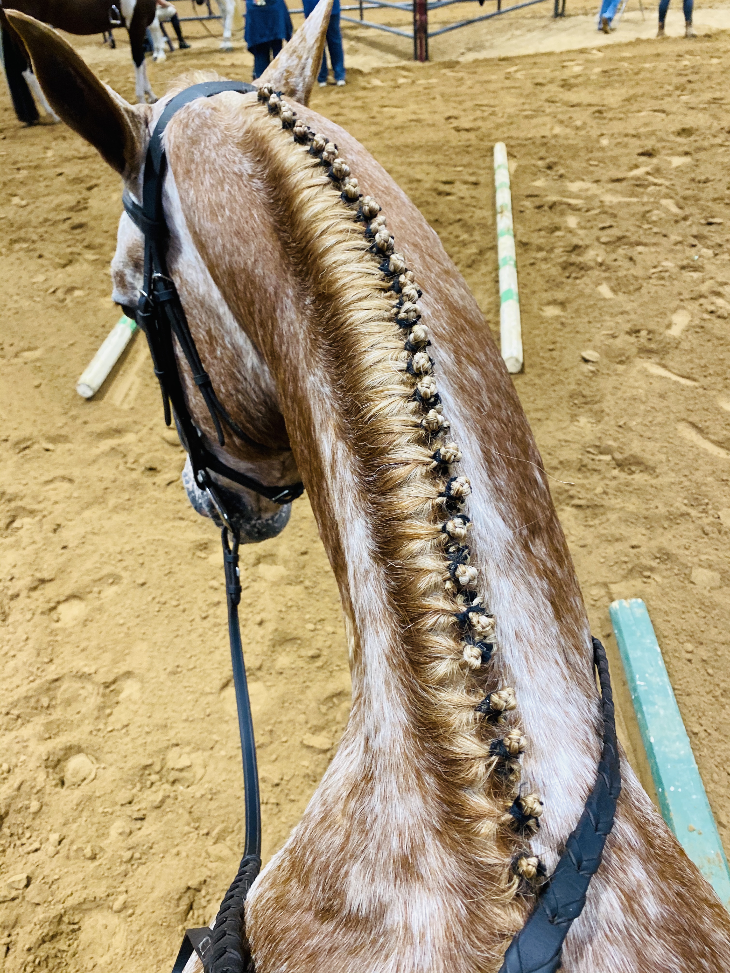 I did not expect anything amazing from either horse, but hoped we wouldn’t embarrass ourselves too badly. Truly, I just needed an excuse to dress up, and braid/band my horses. They may not be the best at anything in the show pen, but personally with all of the spots, chrome, and varnish I’m of the biased opinion that they are usually the best looking when not behaving like complete dragons. I fully realize that most people would disagree with me. I’m good with that.