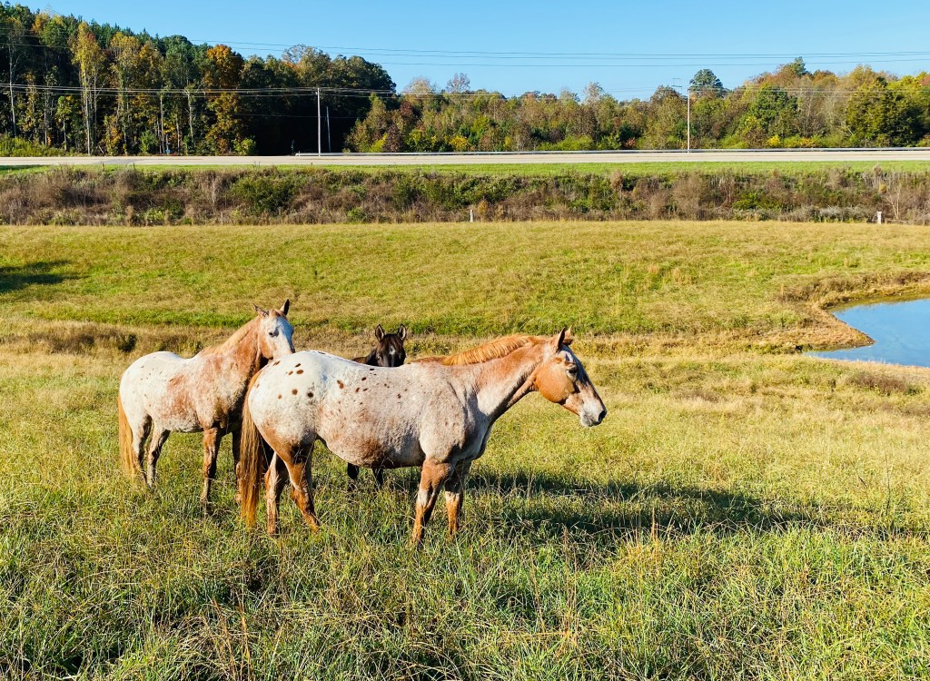We dropped off our passenger around 10:00 am, and headed on up the road to Knoxville, Tennessee. Our horses were pleasantly surprised to be turned out into a 25 acre pasture complete with barn albeit on a hill side. It was a nice 5 day break for them to chill out and just be horses. After leaving the Texas drought they couldn’t believe their luck to be knee deep in green grass, and made the most of it!