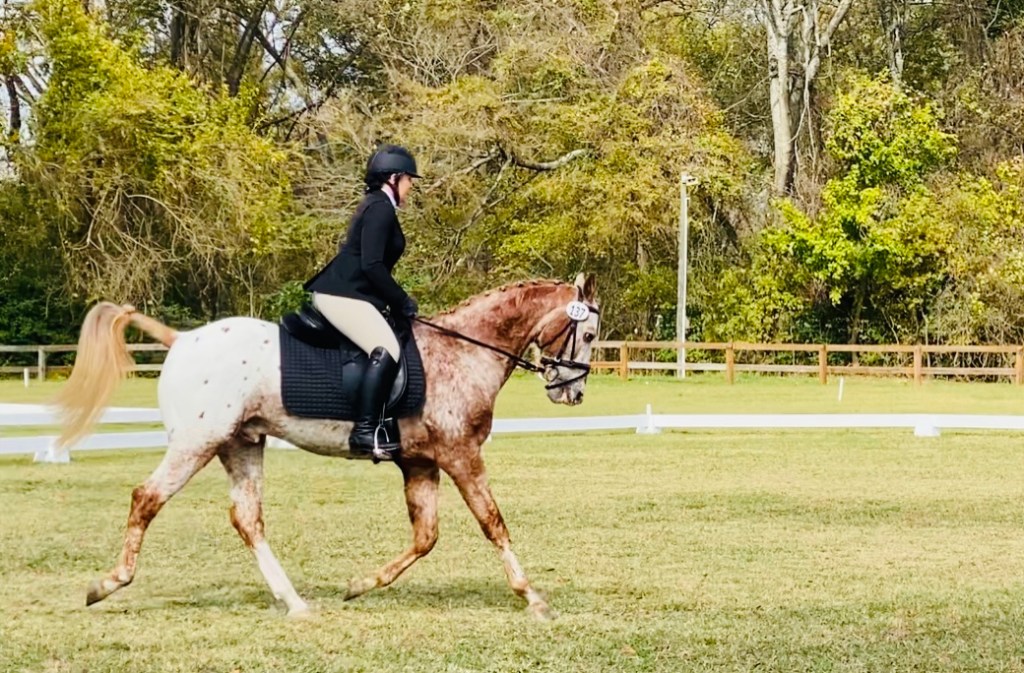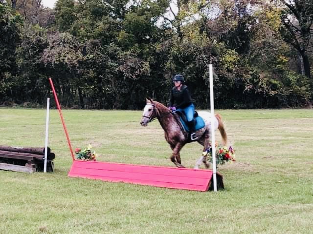 There wasn’t anything to recommend the gelding. Darling Husband had decided before we exited the vehicle, that this horse was not for him. He was three inches shorter than advertised, closer 15.2 than 16 plus hands, scrawny/ribs showing, ewe necked, and sporting a half roached mane. However, when the seller put him on a lunge line, the gelding stepped out as Darling Husband put it with “Moves like Jagger.” Three weeks later despite Darling Husband’s lack of interest we returned to pick him up as my eventing prospect. Fast forward after sitting a year out due to an injury. Thank you, Beau Pony! Skin cancer treatments, another year spent just trying to build topline and reverse the ewe neck, my not so impressive appaloosa gelding, Comanche and I finally found ourselves at our first event.