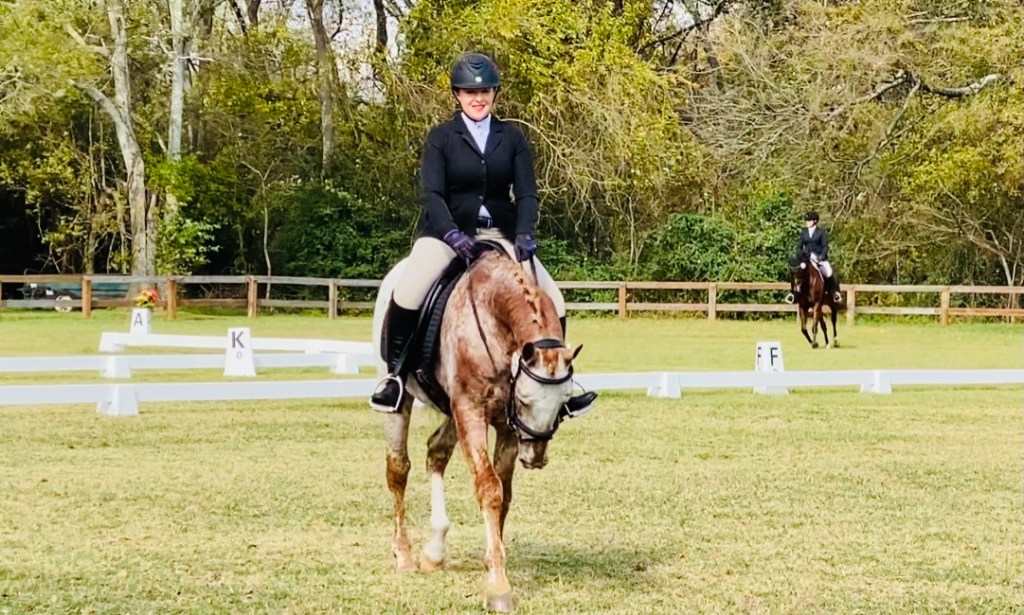 Holding Comanche together during a dressage test is a different situation. So, I used every opportunity during the two week Tennessee trip to work on our transitions and dressage test albeit without an arena. There was also an unexpected benefit from the trail riding. Rain the night before our first trail ride created giant puddles up to twenty feet long that stretched the entire width of the trail in places, perfect water hazard preparation. The month and a half leading up to the event, I don’t think I popped Comanche over a single jump, not even a cavaletti or crossrail. We just drilled dressage relentlessly.