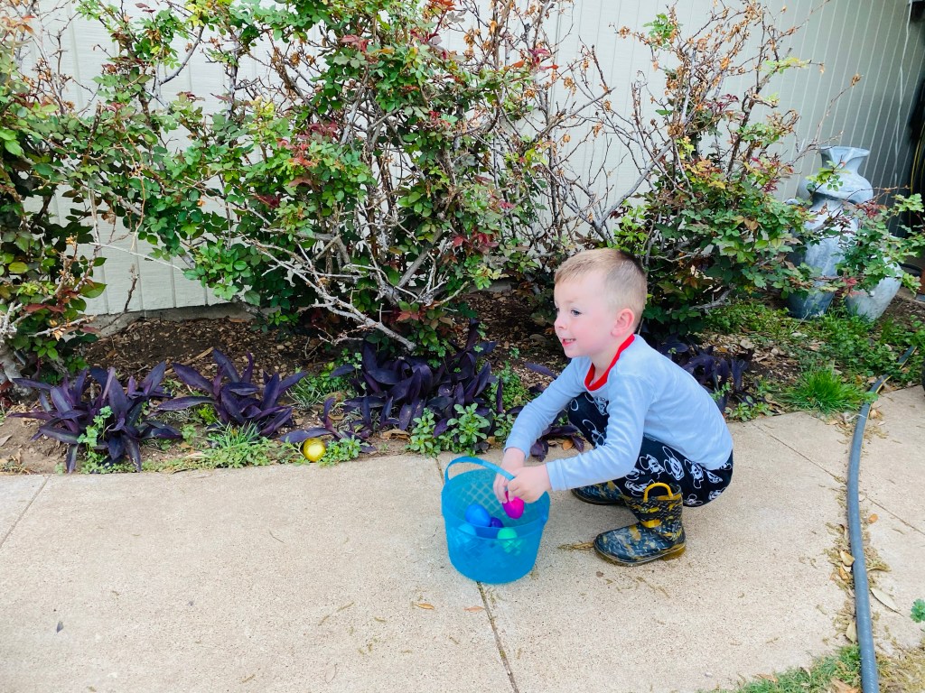 As Jasper is digging through his Easter basket, I discover the dogs have been pilfering the chocolate from the eggs in the back yard. They’ve gone through almost a dozen. Thankfully I have extra candy, so while Jasper is distracted with his basket, I’m hunting all of the eggs I hid first thing this morning, and refilling candy the dogs managed to steal. I threaten dogs within an inch of their life, and shove them all inside the house. Jasper and I go out to find eggs. Darling Husband and I switch out. Finally the color is starting to return to the foal’s gums. He stands up shakily again and makes for momma. She stays still and lets him have a short suckle. We’re not sure if he got anything, but it looks more hopeful.