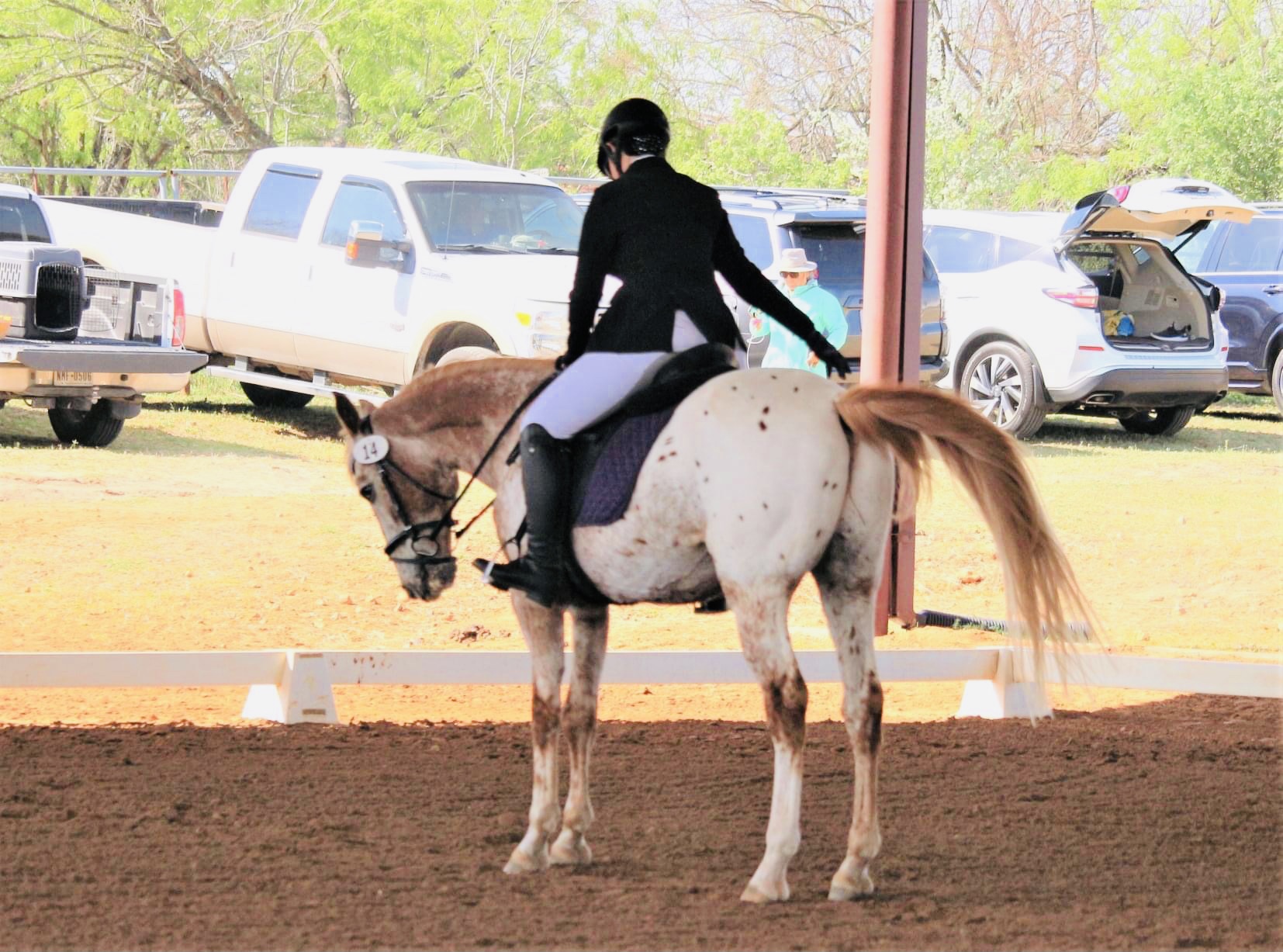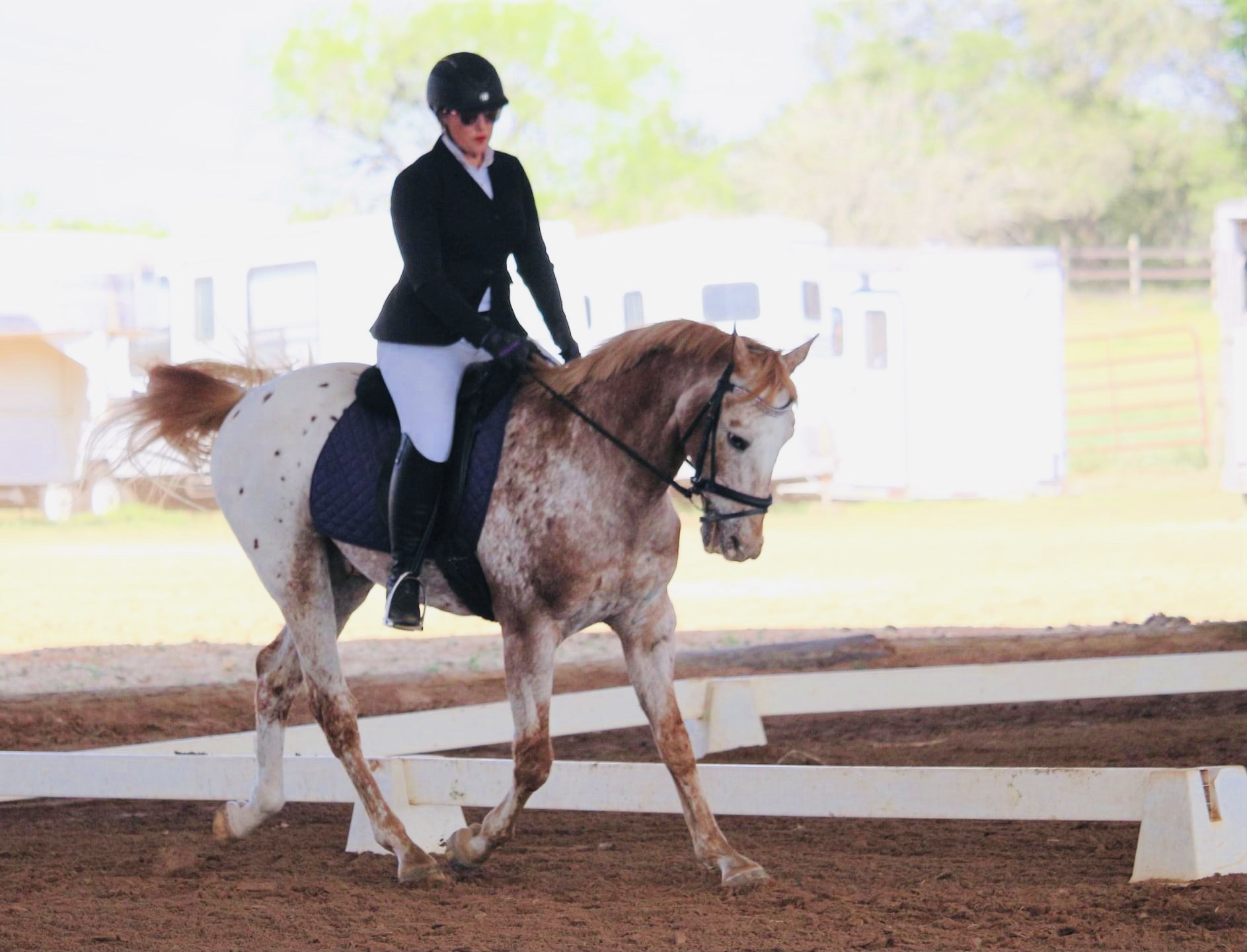 Several people complimented me on the jump rounds my two Appaloosas put in. The ones that had witnessed their previous show antics were impressed by their improved behavior. While the day had been a great one by my standards, I just didn’t think either of my horses’ dressage performances were competitive enough to place us above the riders I didn’t know in our division. I felt sure the girls riding pedigreed animals in tack ten times more expensive than mine, that ride full time with trainers likely had better scores than mine. No one was more surprised than me when the show steward handed me three blue ribbons and dressage scores that exceeded my expectations by a lot. DQ and I packed everything up and hit the road looking forward to some hard earned margaritas and Mexican food. I decided Odessa and Comanche earned a two day break from training for good behavior, plus Johnny Cash hadn’t been ridden in three days which meant he was a bigger work priority.