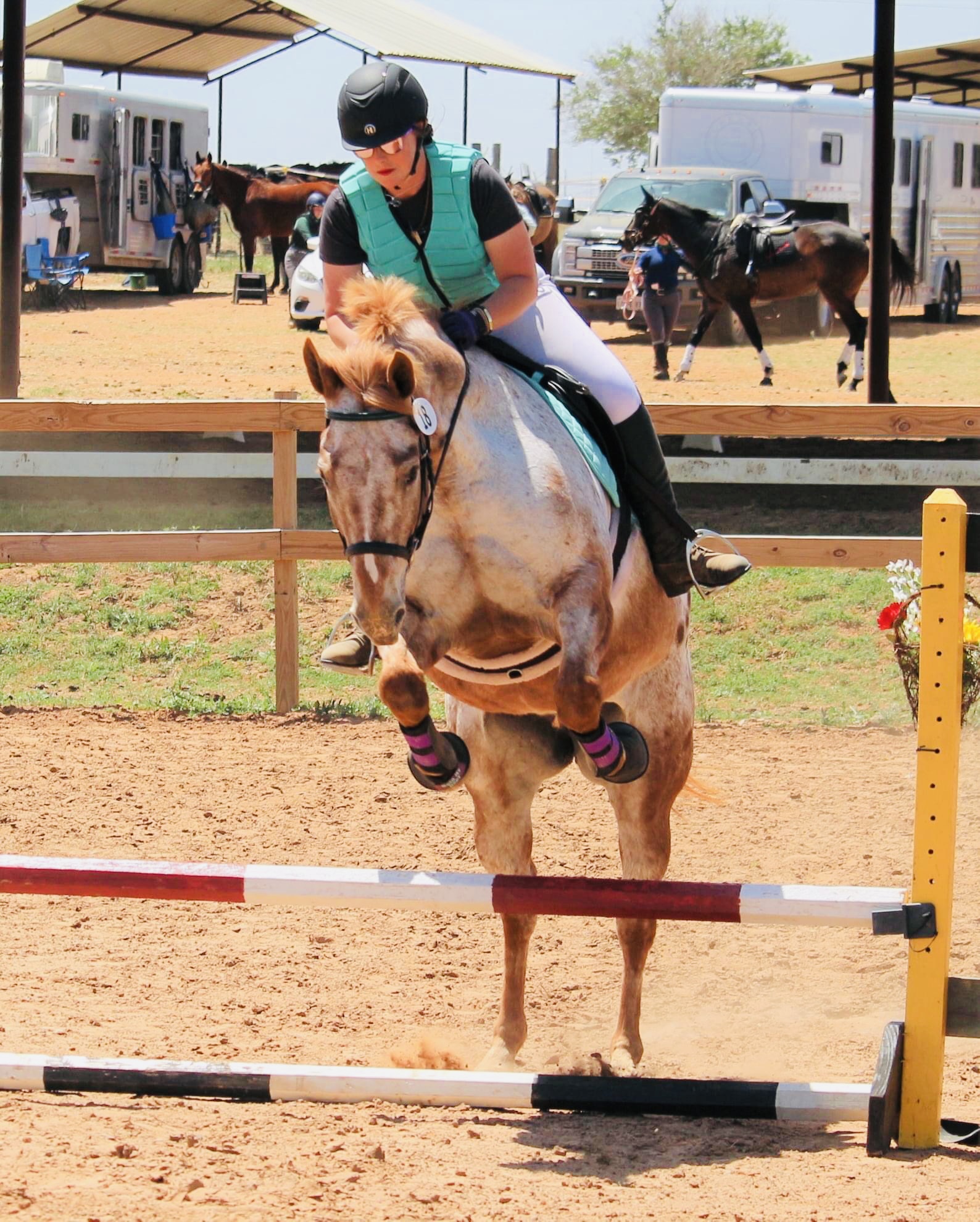 It couldn’t be helped or dwelled on. We rushed back to the barn where I removed her bridle, loosened her girth, fed her a treat, and ran off to grab Comanche. Now up until this point in the day Comanche had been a model citizen, but with no one watching the barn during Odessa’s stadium round he had been pacing, pawing, and screaming. I had heard a horse misbehaving right before I started my stadium on Odessa, but just didn’t think it could be my horse. This is where the prep of having a second saddle was priceless. Even though he had worked himself up, let’s call that warm-up, I didn’t have to worry about tacking up a bouncing horse or worry about saddle fit. All I had to do was throw on a bridle, yank the girth up a few holes, and mount. The fact that I didn’t feel rushed or nervous made a world of difference between this show and last. I didn’t add to Comanche’s stress. Instead I could be the leader he needed and bring his emotions down a few levels.