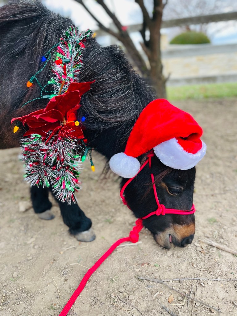 One of my favorite childhood memories is riding in a wagon pulled by a team of Belgium draft horses through a Christmas parade. I don’t own any drafts, mainly because I don’t have the acreage or pasture to feed them, but I’m hoping the pony cart decked out with Christmas lights and sleigh bells will be memories Offspring treasures. We managed to sneak in one Christmas parade on top of the Nature in Lights Christmas ride. I want to make it a priority to do at least two pony cart drives a week from now until Christmas singing carols, because Offspring’s versions of carol lyrics are hilarious. The Christmas channel on XM is the only station my truck is allowed to play between Thanksgiving and Christmas. We also have a Christmas Cart Ride playlist for our pony drives. As Offspring gets bigger and braver, pony cart rides with his mom might not be high on his list of fun Christmas activities, and may even border on embarrassing. I need to treasure the next year or so, and savor these outings.