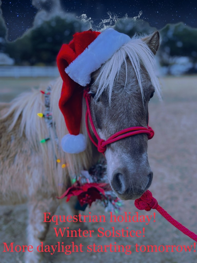 This is officially the 100th post for the GHLHF. It seemed fitting to celebrate the Winter Solstice! Yes it’s several days after the fact, but every single day until Summer Solstice will be around 2.5 minutes longer than the previous. That means I will have gained over an hour of daylight by the end of January. I love shorter days, said no equestrian ever! Who likes waking up in the dark, working all day, and then its dark by the time the day job is over? For those lucky souls that can ride throughout the day, I envy you. I once thought my remote working situation would make me one of you, but Ha! Joke’s on me, because apparently meetings scheduled during normal lunch hour windows are apparently a “thing” now. Don’t get me started on people that only live to work…