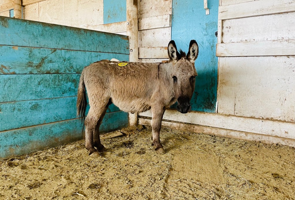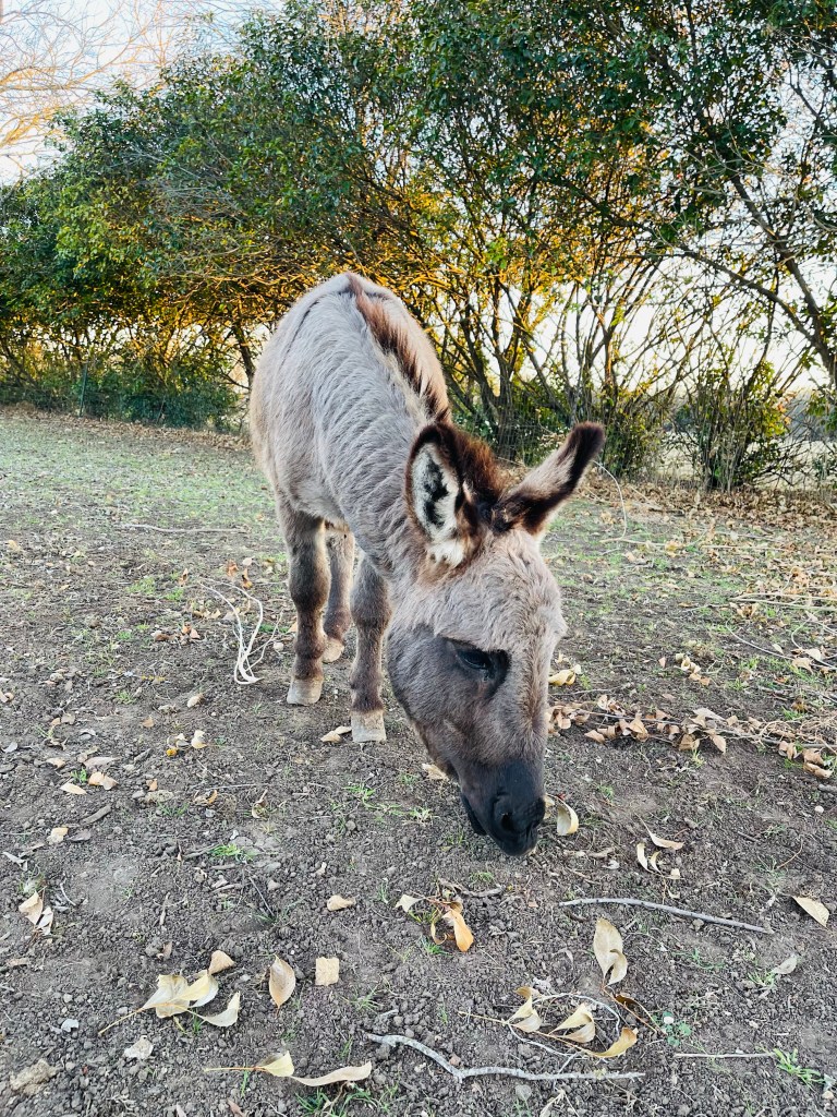 And….that’s how we ended up with Burrito. We knew next to nothing about him except he is cute, he’s male, he’s virtually unhandled, and he’s LOUD! This little 34-ish inch donkey is louder than all three of our standard burros combined. He apparently has his own internal clock because every hour of the day he lets the world know he exists, morning or night. In Darling Husband’s defense, Beau Pony did need a companion since his son that we were babysitting, Peanut, went back to his home. A miniature donkey did seem like a good pasture mate for Beau. After a bucket load of treats a few days confined in a stall, Burrito discovered people are pretty cool and he had hit the jackpot. We discovered that he’s not a jack, and was gelded at some point.