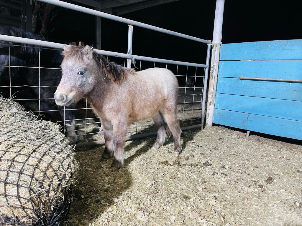 Then….while I’m at the Mustang Magic, geeking out over my favorite trainers and hopping over to John Justin arena to watch the Southwest Donkey and Mule Association show, getting ideas for little Burrito, our neighbor Tra-Exotic sends Darling Husband pictures of some miniature ponies for sale. Tra wheels and deals in donkeys, sheep, and just about any animal he can fit in a trailer. Zebras and camels seem to be animals he has available frequently as well. Tra knows I’m always in the market for the right pony, and just happens to have made a deal involving a donkey(s) that ended with him bringing home 4 mini stud ponies of appaloosa breeding all under the age of 2.