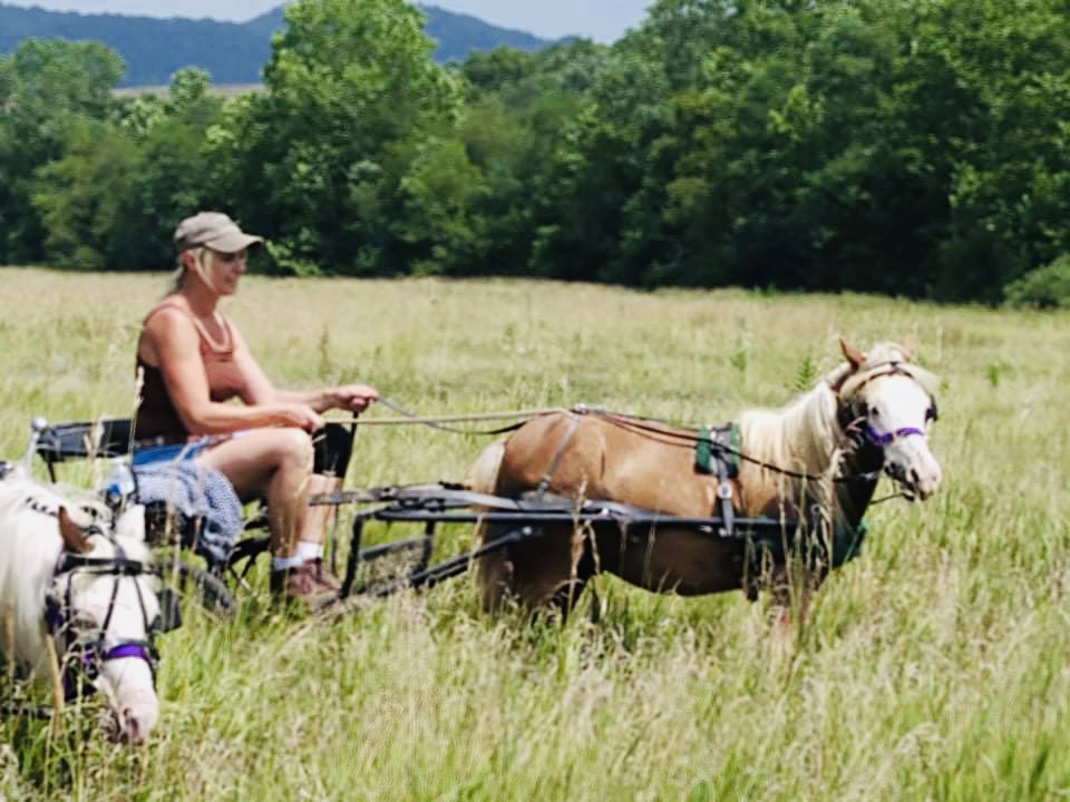 I’m so glad, I took the opportunity to visit Pony Queen. Parts of the drive were utterly terrifying, but, I was not about to admit that to two people who consider it a routine training route. Surviving the experience will make me much bolder in my own training, having realized even my best pony is still a cream puff compared to the little engines that hauled us through the heart of Appalachia. It gave me a new respect for what mini’s/ponies are capable of doing. All of our ponies had gas in the tank when we returned from the drive. They rolled and frolicked up and down the hill in their enclosure after we bathed and turned them loose. I can’t express my gratitude to the Pony Queen enough for trusting me with her darlings, considering my nonexistent mountain driving experience. I left WV eager to return to my own herd and finish training my newest single drivers in preparation for their team training. John Denver was correct. WV is almost heaven, but Texas, the GHLHF home of my ponies still snags that title in my heart!