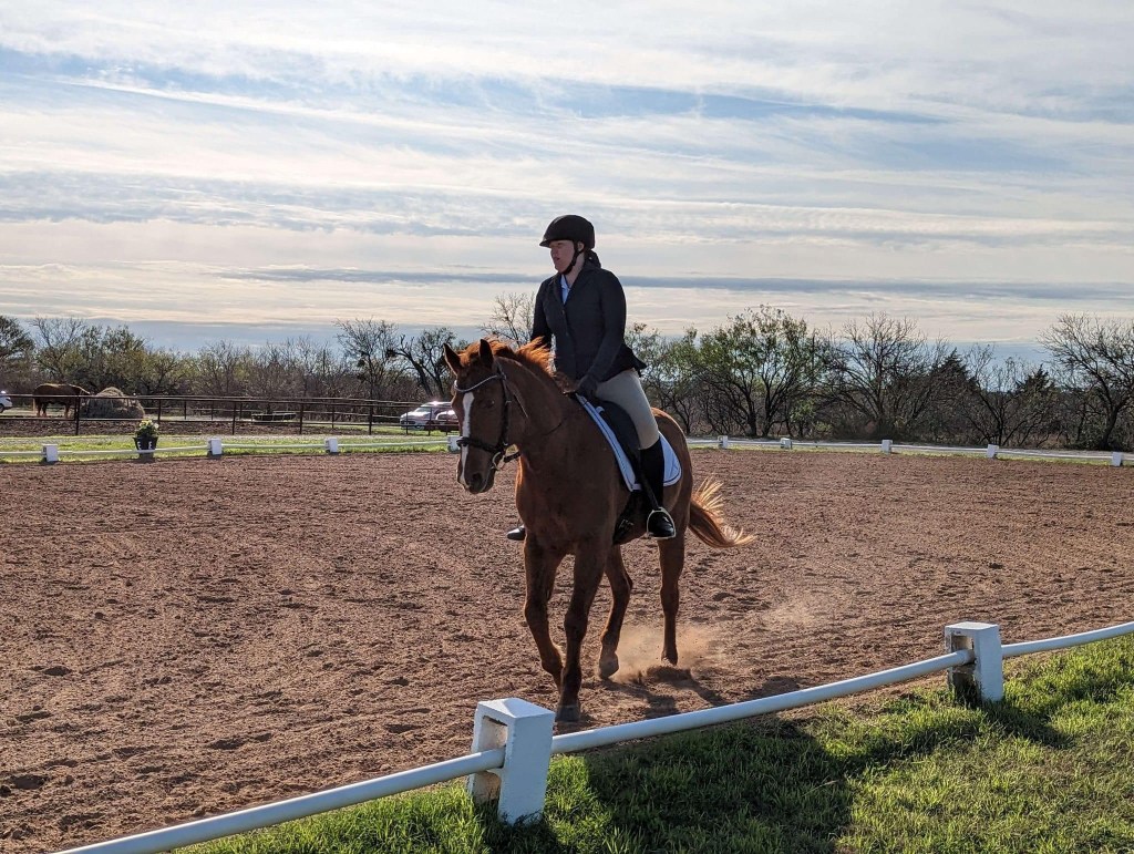 Dressage was the most important phase because GAG doesn’t count time faults in the jumping phases. So stadium and cross country would only matter if someone refused or knocked down a rail, and let’s face it most inexperienced/young riders were still going to be on experienced horses. 18-20in jumping obstacles aren’t going to be something an experienced horse knocks down or refuses no matter how bad the rider is. Lily Pad had a huge advantage over her competition in her horse. Lily, the lovely quarter horse, is quiet, calm, and consistent. She’s not fancy, but in the low levels, a calm consistent animal will beat out a flashier less consistent animal. All Lily Pad had to do was not screw up the pattern/geometry.