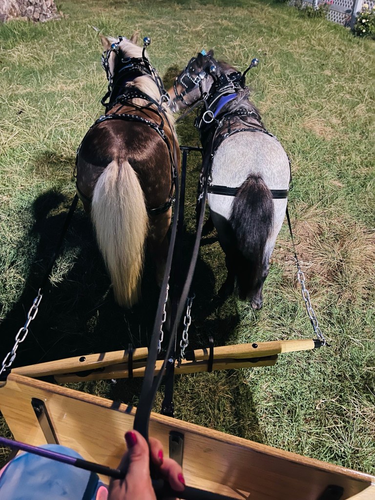 In late Summer 2022, we said goodbye to my Grandmother. I returned from her funeral with a working miniature draft sled, my grandfather had made for me when I was around eight years old. With a goal of using that sled hitched to a team of my ponies for the GHLHF family Christmas cards, I started team training with Apple Jack who was already a solid single driver with four years driving experience and the neurotic Summer, who had maybe four months driving experience. We managed to get that Christmas card photo, then used the sled for small jobs around the farm like moving square bales and cleaning up limbs from an ice storm while both Apple Jack and I were heavy bred (approx. 7 months pregnant), waddling around the farm.