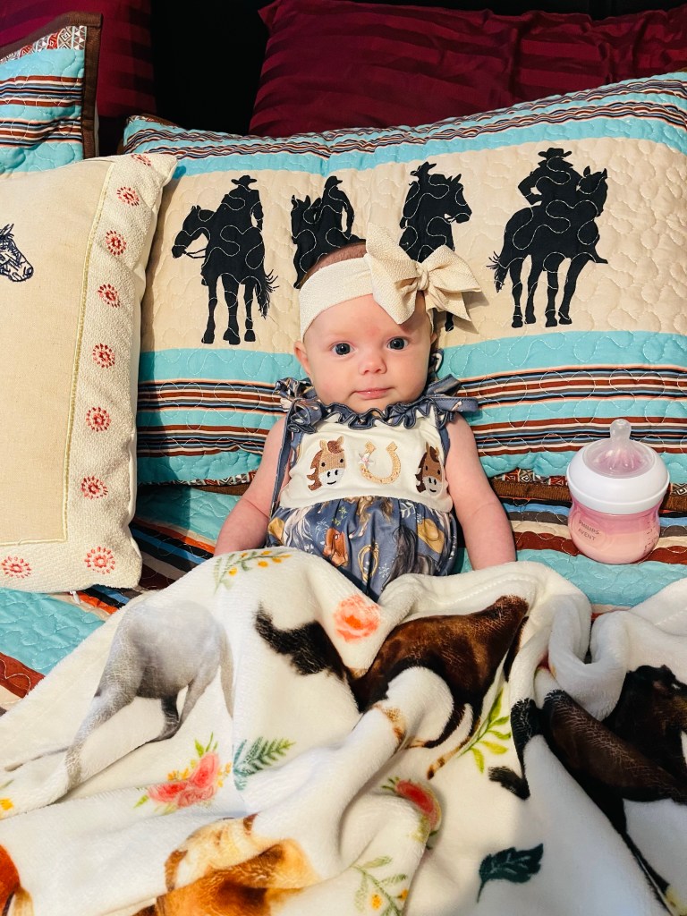 Eventually, the mares and I will do a photo shoot to commemorate the year we all delivered together. Sparkly needs a family photo with her four legged siblings in addition to her human brother, but we’re now in the middle of a Texas summer, which means it will be utterly miserable to do anything until October.