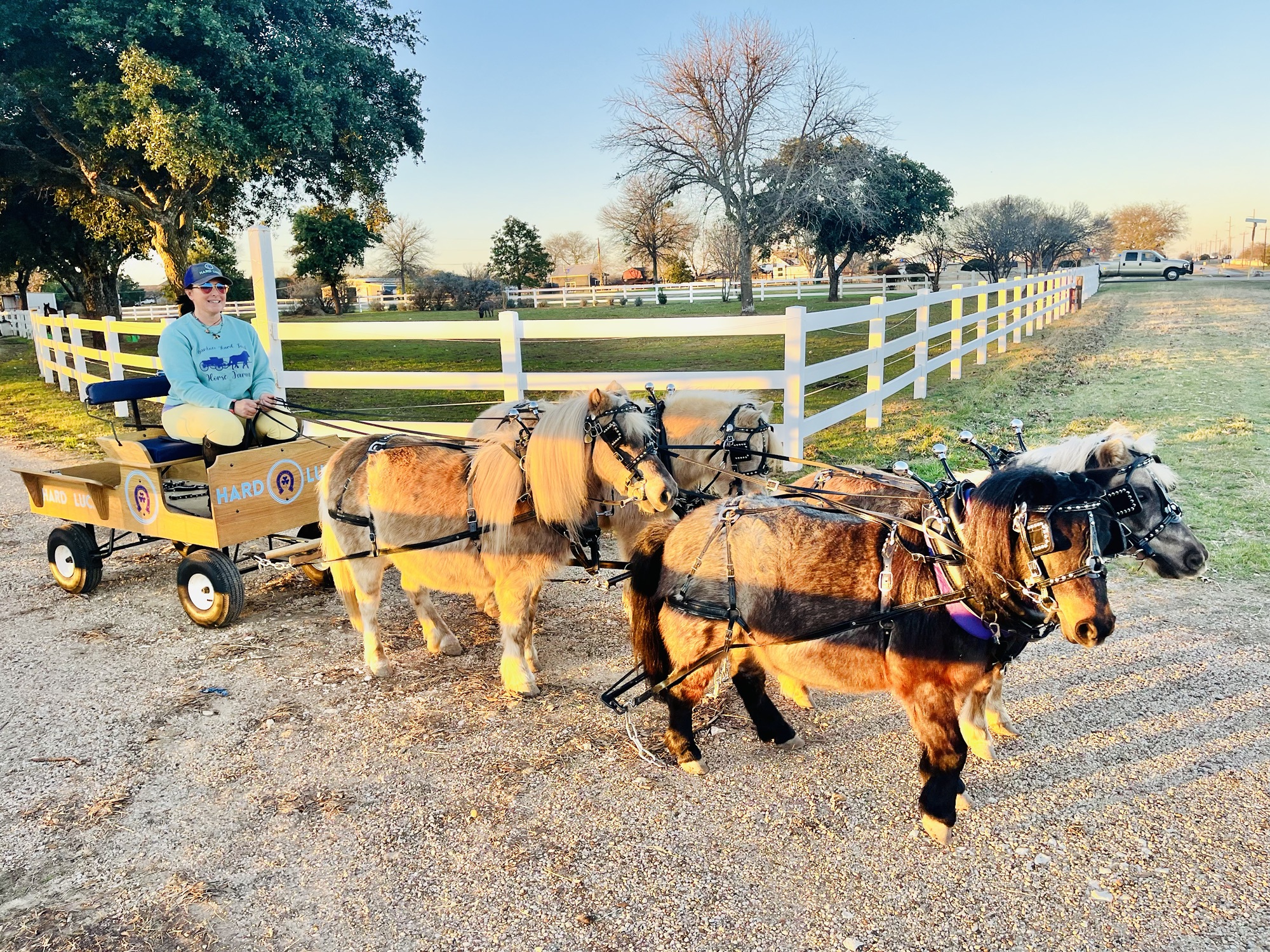 I knew equestrian goals would be hard to accomplish with an infant, so I focused on getting back in the saddle, and planned on getting a few steps closer to my 8 hitch of ponies. Resounding success on both counts as I was in the saddle 11 days post-partum and spent most of the summer getting Johnny Cash ready to transition from Training level to 1st Level in Dressage. I hitched my first team to my new wagon in Mid-June and took off from there. On December 31 I hitched the 4 in hand or 4-Up for the first time. I currently have 5 ponies of the 8 hitch trained, and plan to focus on training two ponies and our mini donkey, Burrito in 2024. I can’t think of anything more adorable than including a miniature donkey into the mix. I’m also saving for the remaining 2 sets of harness I need to complete the hitch.